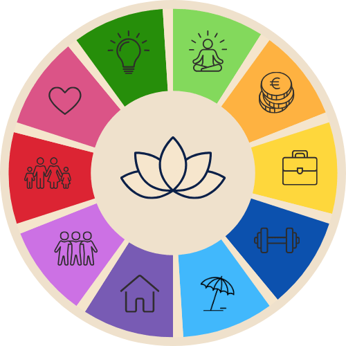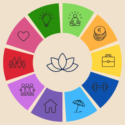 Alle 10 Lebensbereiche betrachten und nach individuellen Vorstellungen Stück-für-Stück verändern