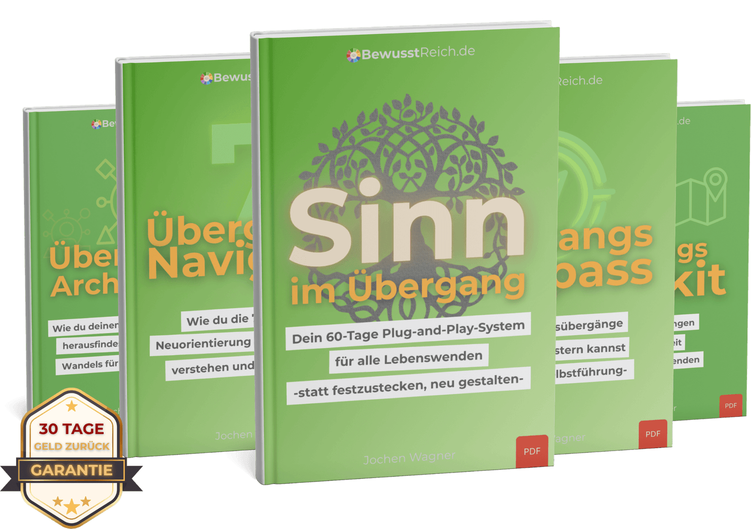 Mit 3-Phasen-Rahmen, Biomarker-Tracking, Sinn- und Finanzinventar, Visionsarbeit und einem vollständigen 90-Tage-Umsetzungsplan.